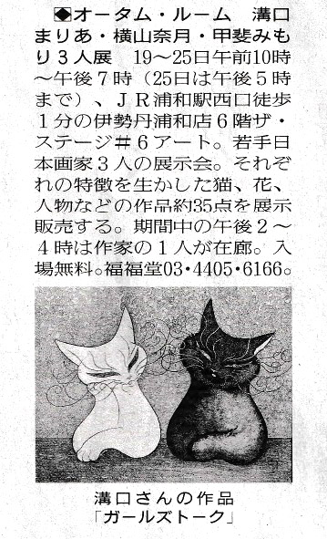オータム・ルーム 溝口まりあ・横山奈月・甲斐みもり3人展