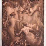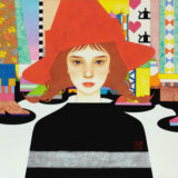 赤池ももこの彫る木口木版の極細線は、閉じられた世界の多感な少女たちを巧みに表現しています。髪の長い少女と熱帯雨林気候下の植物のように生い茂る植物が高温湿潤な世界を思わせます。この輪切りの木口木版の世界にいて何処にも行く気配のない少女たちは、どこからやって来てなぜここにいるのだろうとずっと考えています。