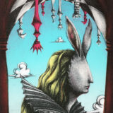 しだれ柳とやさぐれ猫(額装済)│宅急便でお届け│ナンシー諸善 作品展 ー廊下の版画Vol.7ー
