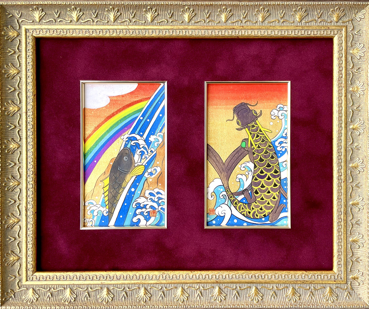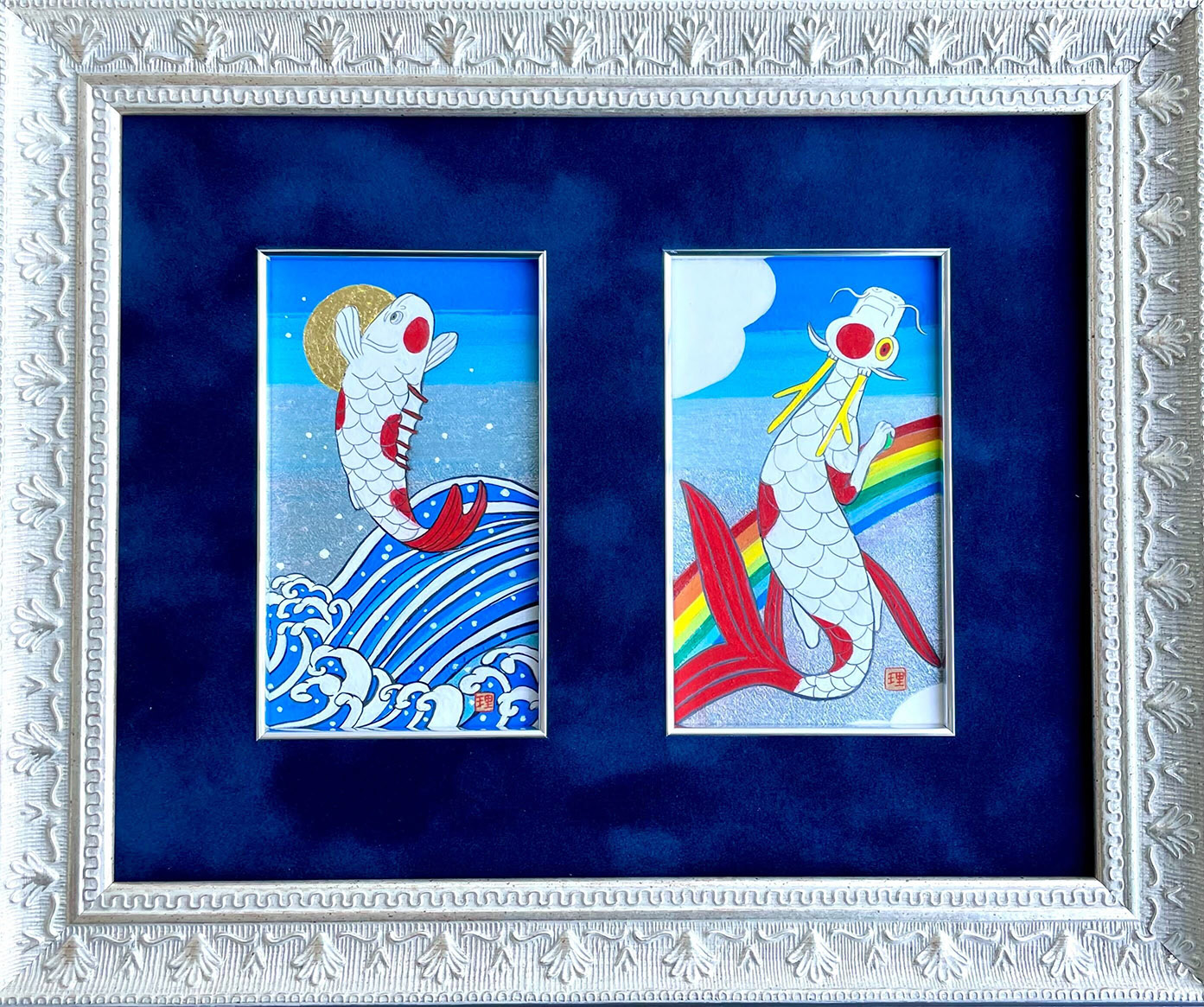 「登竜門(紅白龍)」 斎藤理絵 24×14(cm) 日本画