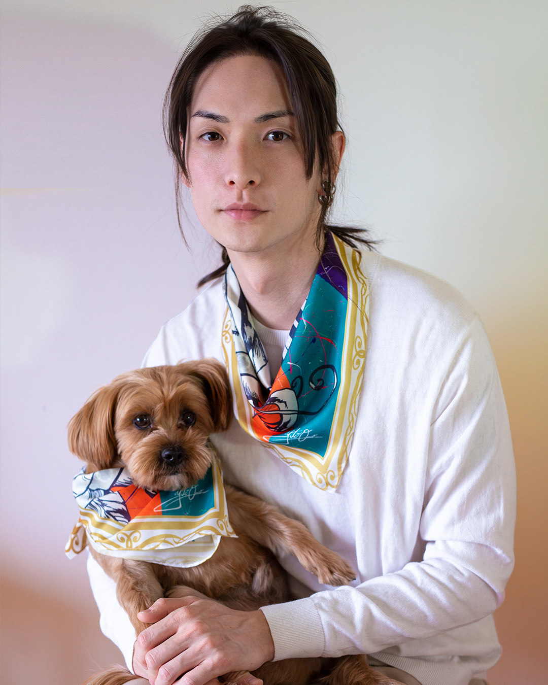 1989年福岡県生まれの現代アーティスト・小野裕人は、馬・龍・犬・猫といった動物や花卉などの伝統的主題から、天使・ペガサス・かぐや姫といった現代的・幻想的な題材まで、古典と現代、現実と想像の領域を自在に横断するモチーフを扱っています。小野作品の大きな特徴は、限られた色数でありながら、画面に強い物語性と緊張感を立ち上げる構成力にあります。