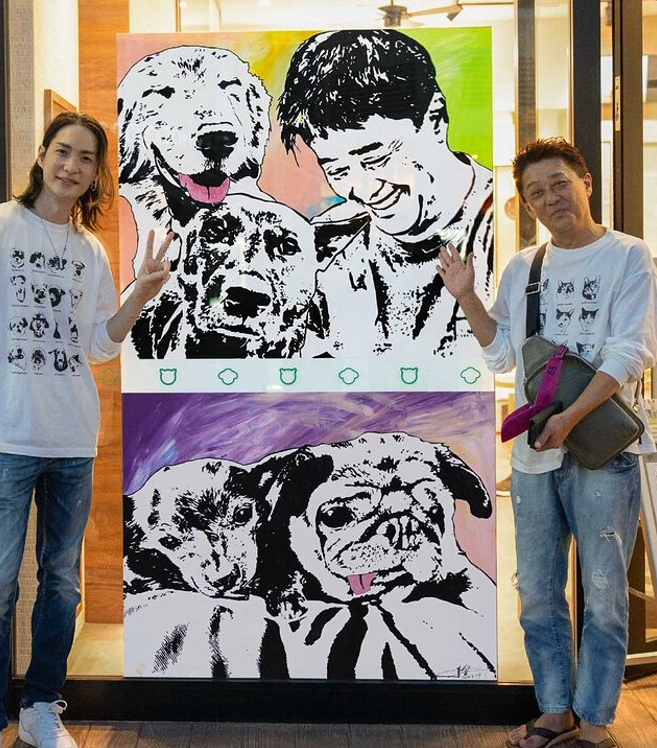 また、ライフワークとして犬の保護活動にも積極的に取り組んでおり、自ら福岡市の動物愛護管理センターでボランティア活動を行うなど、アート制作の時間を割いて継続的な支援を行っています。また毎年カレンダーの売上を全額寄付しており、2024年にはカレンダーの売上345万4500円の全額を宮古島の犬猫保護センターに寄付しました。